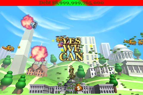 Government is dropping debt from the sky! Can you save what is left of the free market? Throw gold coins from the avatar of freedom to disrupt the cycle of spending for as long as possible before congressional pork destroys the country. But you must also be wary of an even greater threat; the giant Stimulus package that means Game Over for solvency!