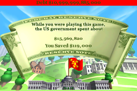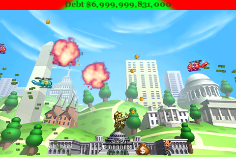 Government is dropping debt from the sky! Can you save what is left of the free market? Throw gold coins from the avatar of freedom to disrupt the cycle of spending for as long as possible before congressional pork destroys the country. But you must also be wary of an even greater threat; the giant Stimulus package that means Game Over for solvency!
